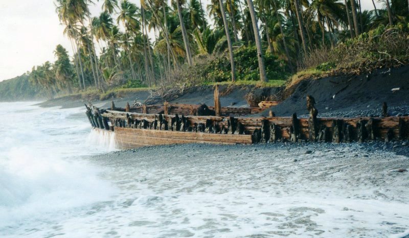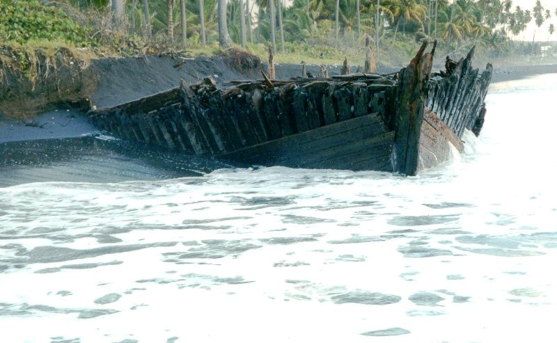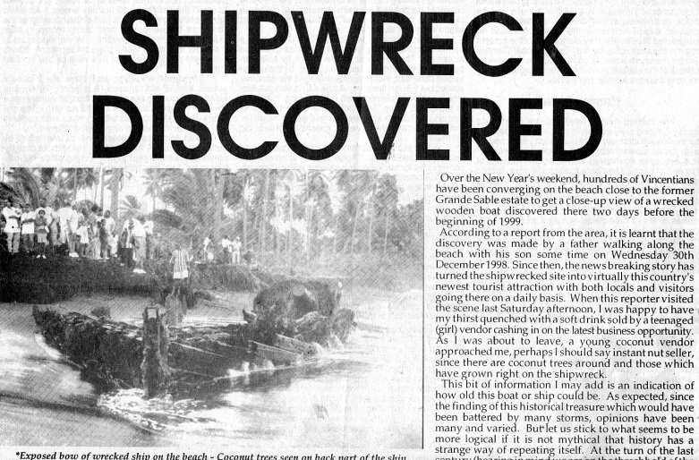 This ship was discovered on Wednesday 30th December 1998.This was an amazing discovery and an opprtunity missed to remove and secure the wreck as a tourist attraction, before most of it was removed by locals or reclaimed by the sea. This particular ship could also be linked to a similar discovery in Langley Park, some years before which was said to be a victim of the devastating 1898 hurricane. Remnants of the ship near Grand Sable still exist among the coconut trees today.