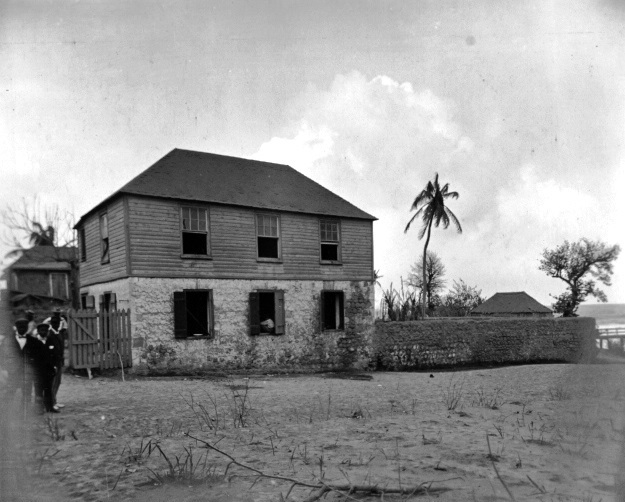 At Orange Hill, there was a large substantial stone built rum cellar, which by the orders of the manager, was left open to afford a refuge for any who wished to avail themselves of it. About seventy crowded together there. The windows were not shut, but they were small and faced the sea, so that the blast did not directly strike them. One man stood by the door holding it ajar to admit any who fled from the huts in the village. Forty were in the cellar, and all were saved. Thirty were in the passage leading into the cellar, and they were all killed. None of those survived who remained in the labourers huts, or were fleeing to and fro about the yard in abject terror. Many shut themselves up in a store with a galvanized iron roof. All died, and were found buried in sand with the roof collapsed and fallen upon them.