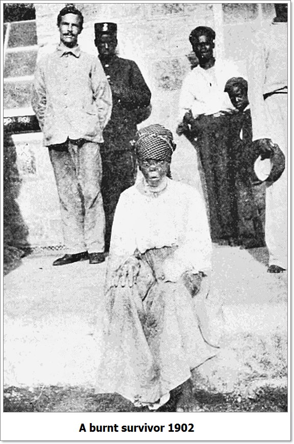 We had also an opportunity of examining many survivors who had passed the afternoon and night of May 7th in the Carib Country. Some of these had completely recovered, others were in the hospital in Kingstown, many were very unwilling to retail the horrors of that afternoon when their friends, relatives, and families had perished at their side.