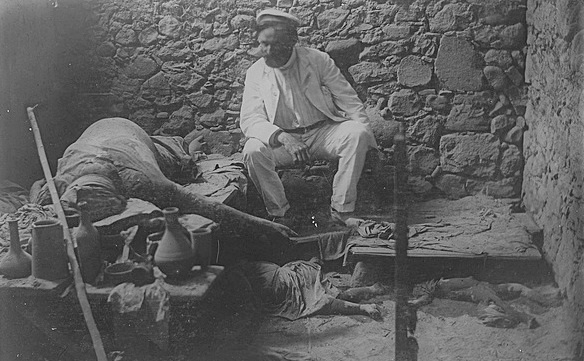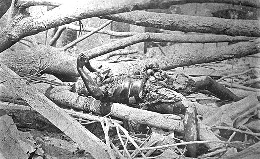 Many of the injured lay among the dead bodies on the floor, covered with a thin film of ashes, groaning, with parched throats, unable to raise themselves and search for water, waiting for death. Most of these died within an hour or two, others dragged on for a couple of days one case was taken to hospital and died three days after the eruption. The direct cause of death was shock and exhaustion.