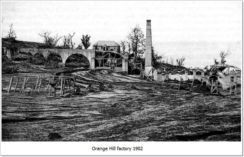 At Turema (Tourama) the fatal cloud did its deadly work quite as effectively. All who were in the manager's house, estimated to number thirty five, were killed. One woman survived for three days, and was found by the first search parties who went out from Georgetown. She begged for water to drink, they gave her some, and returned to make arrangements to have her taken to the relief hospital, where she died shortly after her arrival. In the Great House or Mansion House, four were killed in the kitchen, where the windows and doors had not been effectively closed. Two shut themselves up in another room, closing all apertures as thoroughly as possible, and they survived. All who were in the villages or fields perished, without exception. click here to see the Orange Hill viaduct as it is now.
