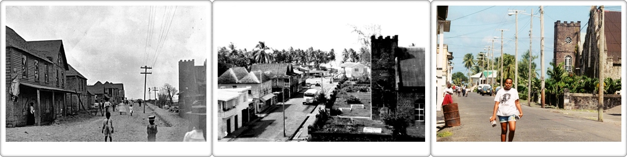 The photos below illustrates different eras of Georgetown. From left to right, 1902 after the Soufriere, 1973 and 1992.